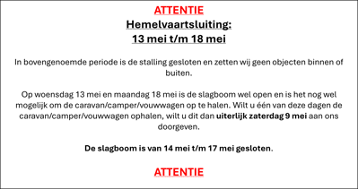 Van 20 oktober tot 1 april is de stalling gesloten en kunnen de caravans er niet uit!!!